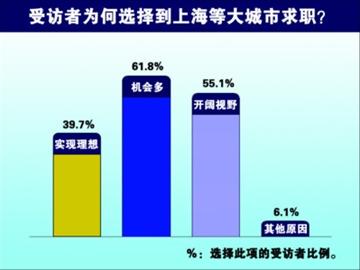 “機(jī)會多”是受訪者的首選,其后依次為:可以開闊視野和實(shí)現(xiàn)自己的事業(yè)理想。
