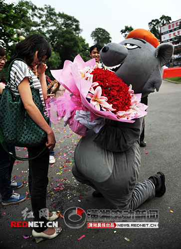 “嫁人要嫁灰太狼”,在網(wǎng)絡(luò)流行的這一句話,6月4日在(湖南)株洲上演真實(shí)版。在樂隊(duì)的伴奏中,吳先生手捧鮮花扮演灰太狼向女朋友求婚。