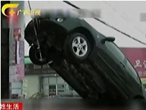 離奇車(chē)禍 汽車(chē)“騰空”上鐵絲