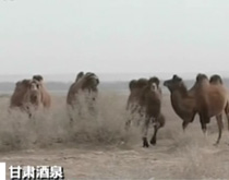 罕見 野駱駝群現(xiàn)沙漠邊緣