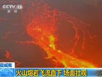 實拍:火山熔巖飛流直下 場面壯觀
