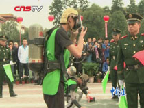成都高校運(yùn)動(dòng)會(huì)大學(xué)生比拼救火中逃生