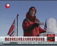 挪威首相抵達南極點向探險家阿蒙森致敬