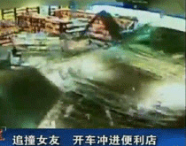 實(shí)拍:男子開車追撞女友 撞進(jìn)超市