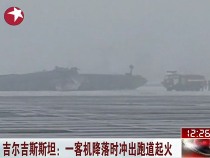 吉爾吉斯斯坦:一客機(jī)降落時(shí)沖出跑道起火