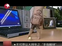 白領(lǐng)用手指踢球 動(dòng)作逼真靈活宛若梅西