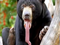 逗趣狗熊打哈欠 “長舌”造型憨態(tài)可掬