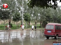 馬路積水深 司機(jī)撒網(wǎng)找車牌