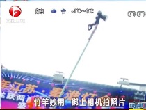 攝影師注重角度 相機(jī)綁在竹竿上拍照片