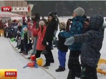 拉脫維亞兒童不畏嚴寒參加趣味扔雪球比賽