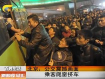 北京國貿(mào)附近公交畫面震撼 乘客爬窗擠車