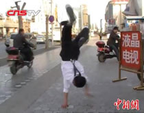鄭州“熱舞哥”不懼冷 街頭忘情勁舞