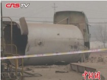 液化氣槽車爆炸 圍墻被炸開罐體飛出五十米
