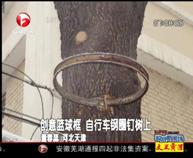創(chuàng)意籃球框 自行車鋼圈釘樹上