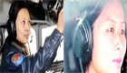 實(shí)拍時(shí)髦女坐機(jī)箱蓋 公交司機(jī)駕駛途中忙聊天