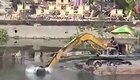 實拍國外牛人用挖土機劃船