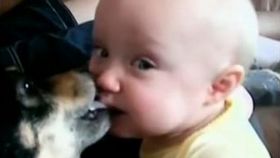 實拍:汪星人與小北鼻深情舌吻