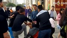 西安眾多保安當街圍毆一名消費者