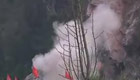 實拍:地震災區(qū)阻路巨石被爆破
