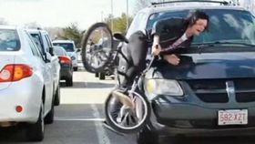 醉酒男主干道上攔車(chē) 跪地磕頭撒百元大鈔
