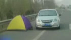 司機高速上搭起帳篷睡覺