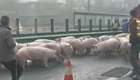 貨車側翻 近百頭豬跑上高速路