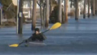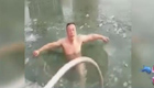 實(shí)拍跳傘員出艙瞬間腳被安全帶絆住 倒掛機(jī)艙口