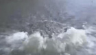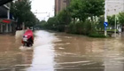 武漢漢口一小區(qū)被淹 街邊商戶門前掃水