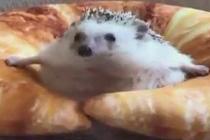 超萌小刺猬被困羊角面包內