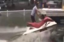 公交車為避讓自行車發(fā)生側(cè)翻 騎車人淡定離開