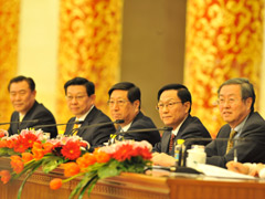- 主持人李連寧:2010-3-6 10:04出席今天記者會(huì)并回答大家提問的嘉賓有:國(guó)家發(fā)展改革委員會(huì)張平主任、財(cái)政部謝旭人部長(zhǎng)、商務(wù)部陳德銘部長(zhǎng)和中國(guó)人民銀行周小川行長(zhǎng)。他們將就加強(qiáng)和改善宏觀經(jīng)濟(jì)調(diào)控來回答大家的提問。