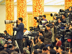 - 中新網(wǎng)報道:2010-3-14 09:46記者會即將開始,攝影記者已經(jīng)將記者席“包圍”,形形色色的大小攝像攝影器材已經(jīng)架上,會場一派忙碌景象。