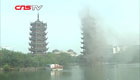 【解說】10月1日早晨,旅游名城廣西桂林市標(biāo)志性景區(qū)——日月雙塔中的日塔發(fā)生火災(zāi)。截止當(dāng)天中午12點(diǎn),火災(zāi)已被撲滅。此次火災(zāi)造成一名工作人員被灼傷,景區(qū)因受損將暫停開放,事故原因正在調(diào)查之中。