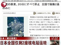 日本《朝日新聞》稱(chēng),目前日本全國(guó)僅剩2座核電站運(yùn)轉(zhuǎn)。