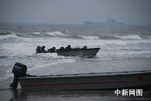 4月3日上午,美國海軍陸戰(zhàn)隊(duì)司令詹姆斯·康威上將一行在南海艦隊(duì)司令員蘇士亮中將陪同下,專程到南海艦隊(duì)野外兩棲登陸訓(xùn)練場(chǎng),參觀中國海軍陸戰(zhàn)隊(duì)某旅的軍事演練和海軍某部的反恐演練。