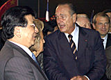 | 法國總統(tǒng)希拉克將率領(lǐng)包括300多企業(yè)家的龐大代表團(tuán)于10月8日至12日對中國進(jìn)行國事訪問并出席法國文化年開幕活動。根據(jù)日程安排,希拉克將訪問成都、北京、上海和香港。此次是希拉克作為總統(tǒng)第三次訪問中國。 |