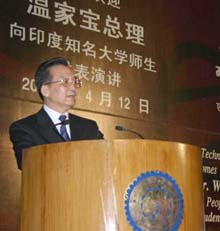 溫家寶在印度德里理工大學(xué)演講 吁實(shí)現(xiàn)互利共贏(4月12日18:07)