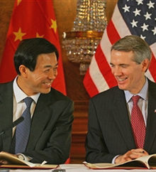6月11日,中國(guó)商務(wù)部部長(zhǎng)薄熙來(lái)與歐盟貿(mào)易委員曼德?tīng)柹图徔椘穯?wèn)題簽署備忘錄,中歐紡織品貿(mào)易爭(zhēng)端成功解決