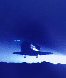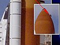 “哥倫比亞”號航天飛機在發(fā)射升空過程中,一塊手提箱大小的絕緣泡沫從主燃料箱脫落后砸中飛機左翼,并造成上述部位隔熱瓦破損。當航天飛機返回地球的過程中,超高溫氣體從缺口部位乘虛而入,最終導致機體因溫度過高而解體,7名宇航員在勝利前夕悲劇性殉職。
