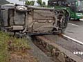 臺(tái)風(fēng)刮翻小汽車