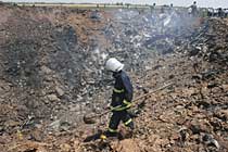 圖:消防人員正在消理現(xiàn)場