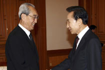 圖:韓國(guó)總統(tǒng)李明博會(huì)見(jiàn)朝鮮吊唁團(tuán)