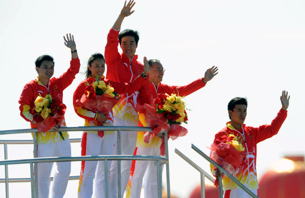 劉翔李寧亮相彩車