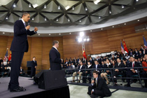布什 任期之內(nèi)4次訪問中國。2008年8月8日出席北京奧運(yùn)開幕式,成為首位在任內(nèi)參加在他國舉辦的奧運(yùn)開幕式的美國總統(tǒng)。 |