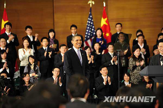 圖:美國總統(tǒng)奧巴馬在上海發(fā)表演講
