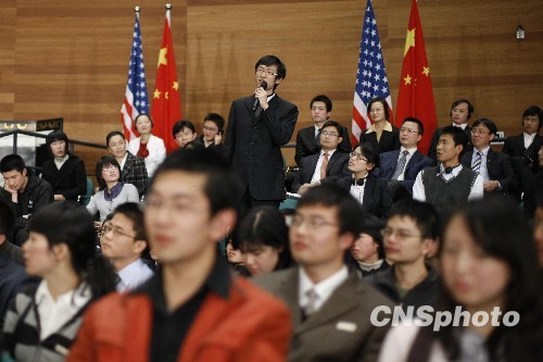 圖:美國總統(tǒng)奧巴馬在上海與中國青年對話