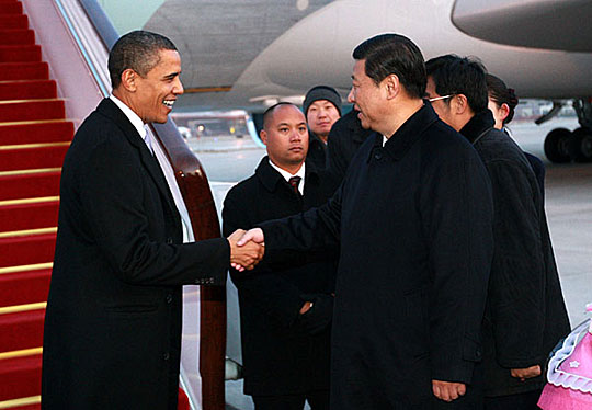 圖:奧巴馬飛抵北京 習(xí)近平前往機(jī)場迎接