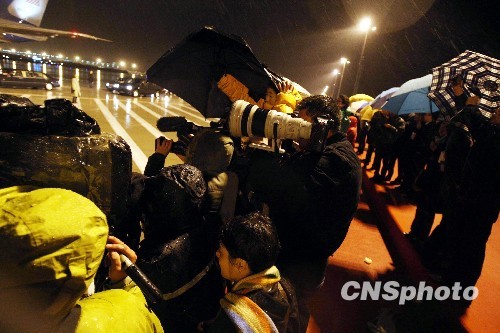 圖:美國總統(tǒng)奧巴馬抵達(dá)上海 記者雨中等候