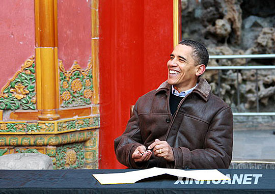 圖:奧巴馬為八達(dá)嶺長城題詞留念