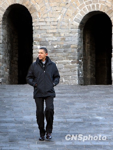 圖:奧巴馬冒嚴(yán)寒登八達(dá)嶺長城(2)